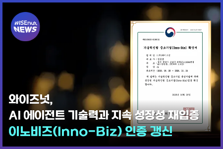 와이즈넛, 이노비즈(Inno-Biz) 인증 갱신… AI 에이전트 기술력과 지속 성장성 재입증
