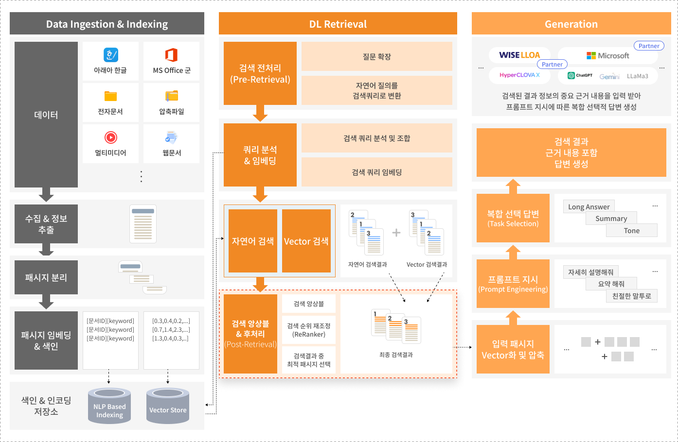 기업 내부 데이터를 검색해 LLM이 정확한 답변을 할 수 있게 최적의 성능을 보장합니다.