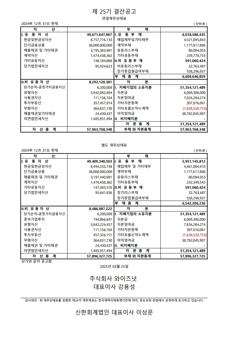 | 25기 결산공고 (2025년 3월 27일 게재분) | |