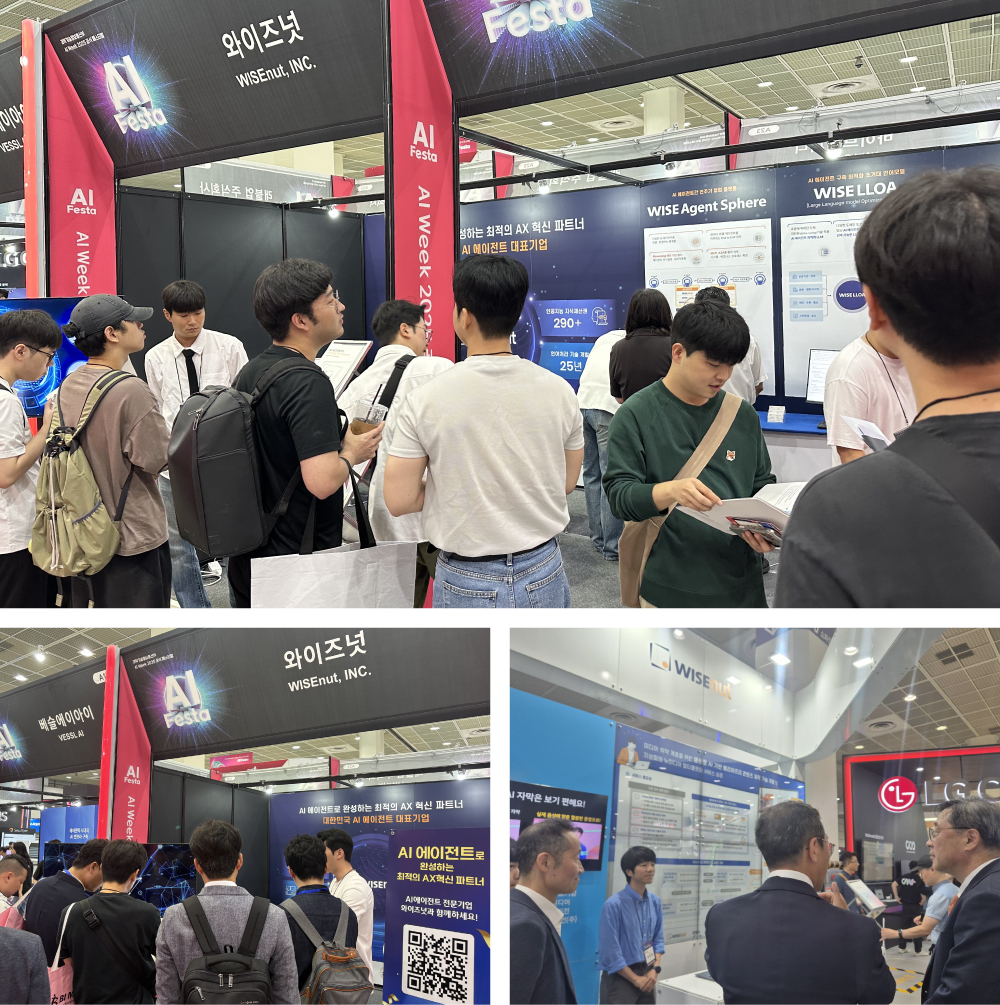 - 국내 최대 규모의 인공지능 페스티벌 … 과기부 ‘AI Week‘ 대표 행사 - 멀티 에이전트 협업 플랫폼부터 AI 에이전트 특화 LLM까지…AX 혁신 방안 제시 AI 에이전트 전문기업 와이즈넛(대표 강용성, 096250)은 9월 30일부터 10월 2일까지 삼성동 코엑스에서 열린 ‘AI Festa 2025(AI 페스타 2025)’에 참가해 AI 에이전트 신제품을 소개하고 초거대AI 플래그십 프로젝트 성과를 선보였다. ‘AI Festa 2025’는 과학기술정보통신부가 주최한 AI Week의 대표 행사로, 국내 최대 규모의 AI 축제다. 올해는 △AI 코어존 △AI 융합존 △AI 트렌드존 등으로 꾸며졌으며, 네이버클라우드·LG AI연구원·업스테이지·NC AI·SKT 등 국내 주요 AI 기업들이 총출동해 AI 국가 전략의 현재와 미래를 한자리에 선보였다. 와이즈넛은 이번 행사에서 KOSA 공동관과 NIPA 초거대AI 플래그십 프로젝트관을 동시 운영한 유일한 기업으로, AI 에이전트 기술 상용화 역량과 R&D 과제 중심의 기술 내재화 성과를 모두 보여주며 현장 관람객의 높은 관심을 끌었다. 먼저, KOSA 공동관에서는 ‘AI 에이전트로 완성하는 최적의 AX 혁신 파트너’를 주제로, 와이즈넛의 차별화된 AI 신제품을 집약적으로 전시하고 각 제품별 기능을 직접 체험해 볼 수 있도록 구성했다. 특히, 지난달 WISE Edge(와이즈 엣지) 행사에서 첫 공개 이후 높은 관심을 모았던 △멀티 에이전트 협업 플랫폼 ‘WISE Agent Sphere(와이즈 에이전트 스피어)’, △에이전트 특화형 대규모 언어모델 ‘WISE LLOA(와이즈 로아)’ △대화 에이전트 서비스 ‘현명한 앤써니(WISE Answerny)’를 집중 소개해, 현장에서는 도입 상담 및 협업 문의가 쇄도했다. 또한, 와이즈넛은 초거대AI 플래그십 프로젝트관에서 과학기술정보통신부와 정보통신산업진흥원(NIPA)이 추진하고 와이즈넛이 주관기관으로 참여 중인 △생성형AI 기반 법률 비서 및 보조 서비스 실증 과제와 △미디어 취약 계층을 위한 생성형AI 기반 배리어프리 콘텐츠 제작 기술 개발 과제를 소개해, AI 기술의 사회적 가치 확산과 산업적 파급력을 동시에 입증하기도 했다. 와이즈넛 강용성 대표는 “이번 전시를 통해 AI 에이전트 기술에 대한 뜨거운 관심과, 업무 혁신을 원하는 현장의 다양한 요구를 직접 확인할 수 있었다”라며, “와이즈넛은 앞으로도 고객의 비즈니스 니즈를 반영한 최적의 AI 에이전트 기술을 고도화하고, 업무 효율성을 극대화하는 AX 혁신 실현에 적극 앞장서겠다”라고 강조했다.